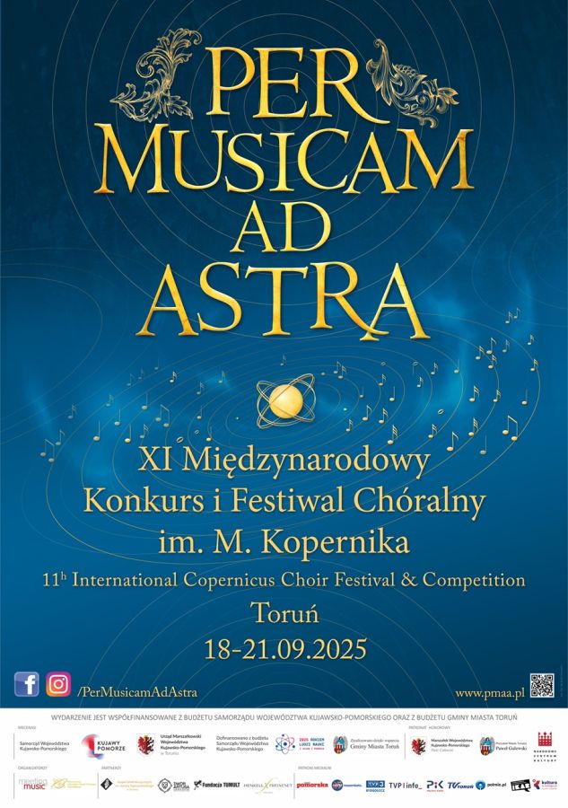 The 11th International Choir Festival and Competition “Per musicam ad astra” named after Nicolaus Copernicus will take place from September 18 to 21, 2025, in Toruń and Chełmża. The event is organized by the Toruń-based Association of Choral Music Lovers “Astrolabium” and co-organized by the German agency “Meeting Music.” This year, over a dozen choirs from the Czech Republic, Lithuania, Latvia, Norway, Poland, South Africa, and Singapore will participate. The program includes competition auditions and festival concerts, culminating in the Nicolaus Copernicus Grand Prix competition. Admission to the concerts featuring choirs from various continents is free!