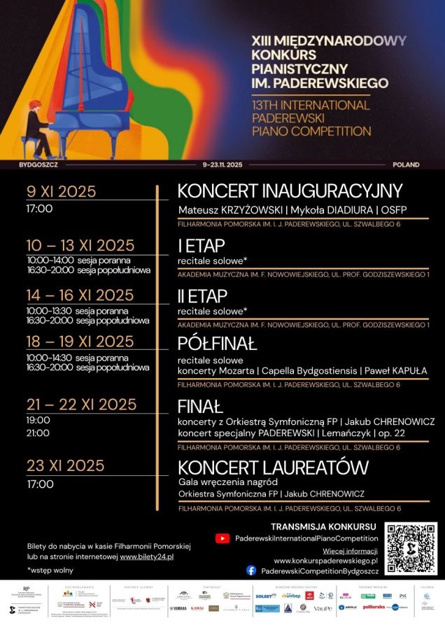 Detailed schedule of the Competition: https://www.konkurspaderewskiego.pl/harmonogram-xiii-konkursu/