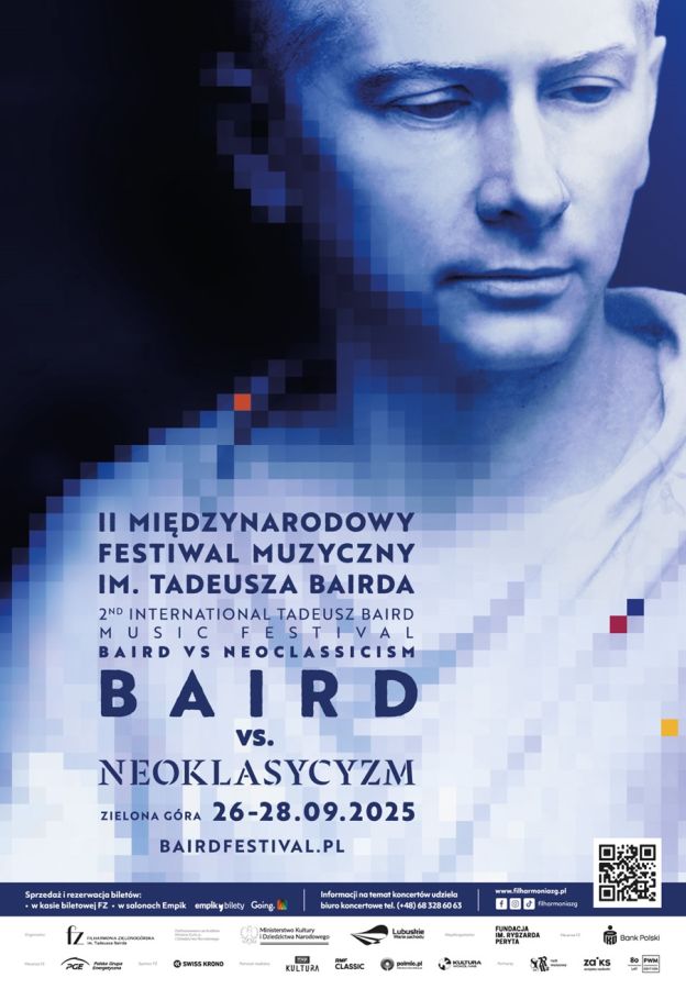 The 2nd Tadeusz Baird International Music Festival will take place on 26–28 September at the Zielona Góra Philharmonic, an institution that bears the name of the outstanding Polish composer and serves as the initiator of this project. The theme of the 2025 edition is “Baird vs. Neoclassicism”, with the neoclassical movement serving as the guiding motif of the Festival. The program will include a symphonic concert, chamber music concert, piano recital, and accompanying events.