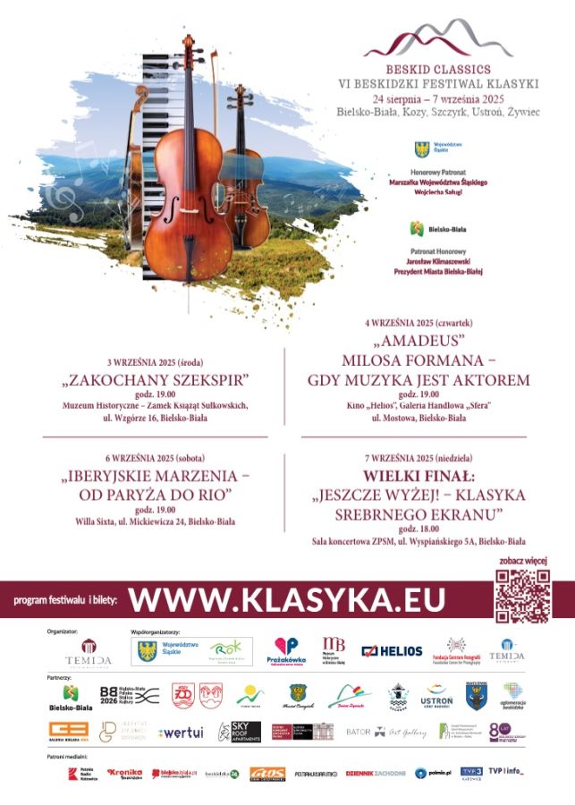 Concerts of the 6th Beskid Classics Festival – the largest classical music festival in the Polish Beskids – will take place from August 24 to September 7, 2025, not only in Bielsko-Biała, but also in Kozy, Ustroń, Szczyrk, and Żywiec.