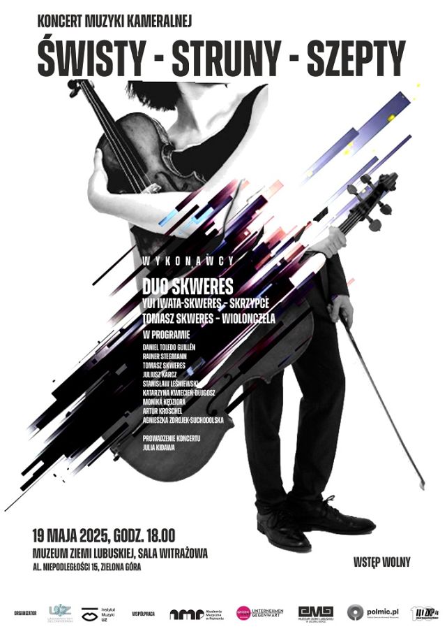 The annual contemporary music concert "Whistles – Strings – Whispers" has become a tradition at the Institute of Music, part of the Faculty of Arts of the University of Zielona Góra. On May 19, 2025, at 6:00 p.m., at the Lubusz Land Museum (15 Niepodległości Avenue, Zielona Góra), in addition to works by composers representing Zielona Góra and Poznań, the program will also feature music by composers and performers from Regensburg, interpreted by Duo Skweres. Admission is free!