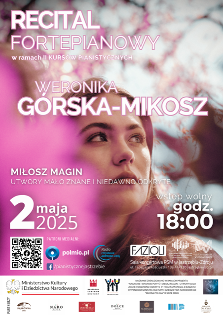 On May 2 at 6:00 PM, pianist Weronika Górska-Mikosz will give a recital featuring rarely performed and recently rediscovered piano works by Miłosz Magin. A graduate of the Academy of Music in Katowice, Górska-Mikosz completed a recording and album release project dedicated to Magin’s piano music in 2024, as a recipient of the “Young Poland” Scholarship Program.