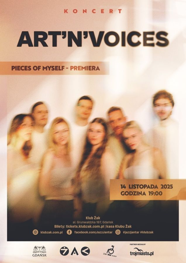Pieces of Myself is a collection of ten emotions hidden within the new album by the vocal ensemble Art’n’Voices—an introspective journey in search of what is hidden, and sometimes merely covered up. The album will be released on October 24, and its concert premiere will take place on November 14, 2025, at 7:00 PM at Żak Klub.