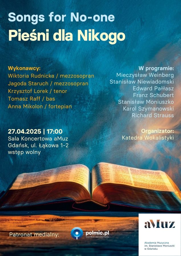 More information: https://www.amuz.gda.pl/wydarzenia/songs-for-no-one-piesni-dla-nikogo,2854