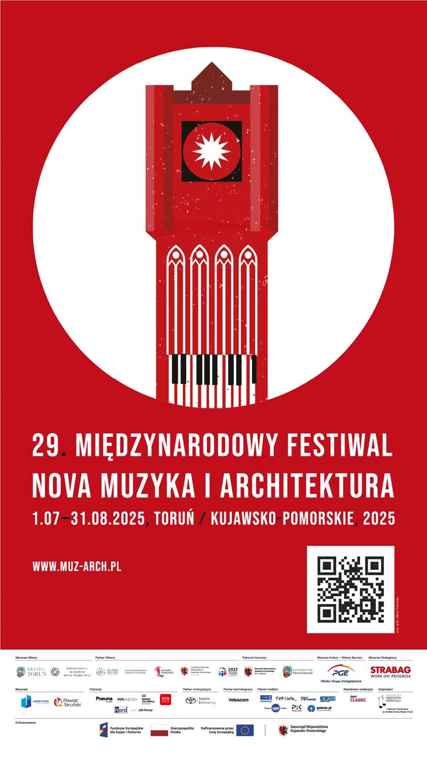 Toruńska Orkiestra Symfoniczna zaprasza na 29. Międzynarodowy Festiwal Nova Muzyka i Architektura, który odbędzie się w dniach 1 lipca - 31 sierpnia 2025 roku. Muzyka klasyczna, filmowa i rozrywkowa zabrzmi w zabytkowych i nowoczesnych wnętrzach architektury toruńskiej, m.in. w Ratuszu Staromiejskim, Kościele św. Szczepana, CKK Jordanki, Dworze Artusa oraz w amfiteatrze Teatru Baj Pomorski. Znaczna część wydarzeń festiwalowych będzie w tym roku bezpłatna.