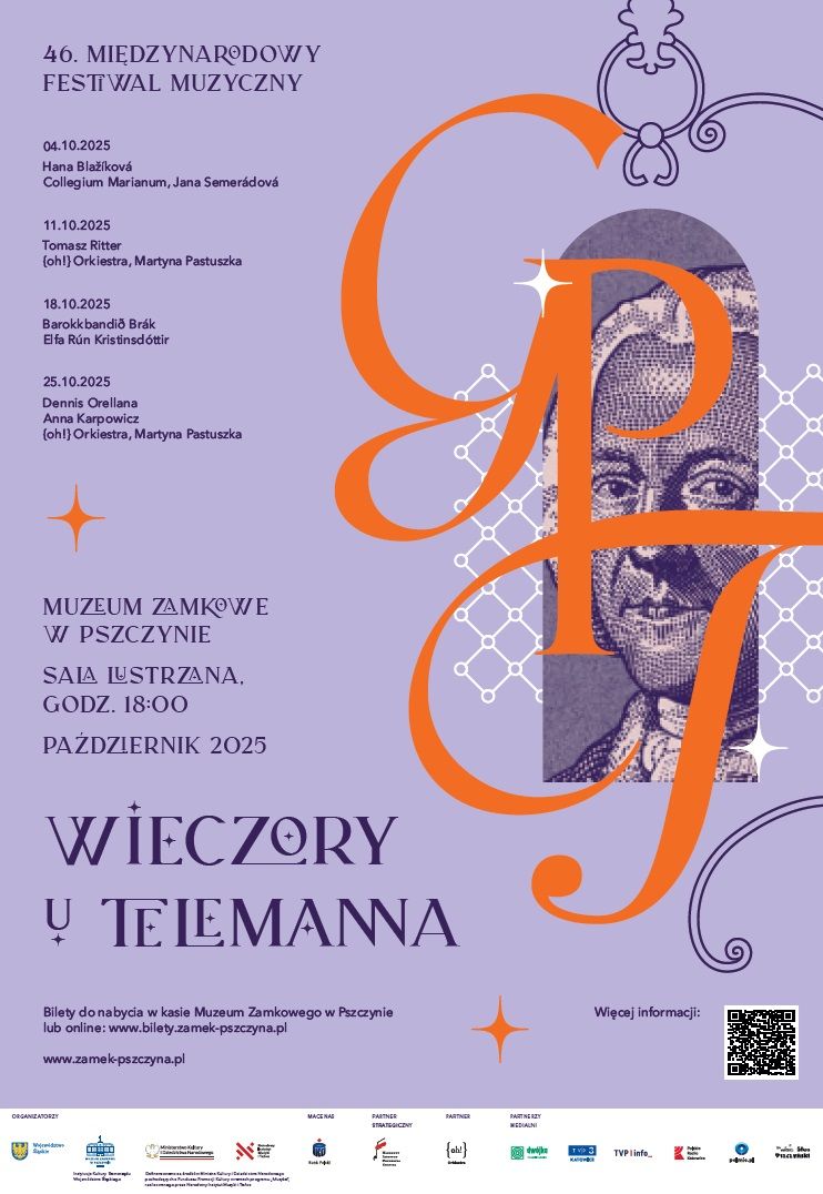46. Międzynarodowy Festiwal Muzyczny "Wieczory u Telemanna" odbędzie się w dniach 4-25 października 2025 w Sali Lustrzanej Zamku pszczyńskiego. Tegoroczna edycja Festiwalu to fascynująca podróż przez muzykę XVIII i XIX wieku – od Telemanna i Händla po prawykonanie polskiej muzyki współczesnej.