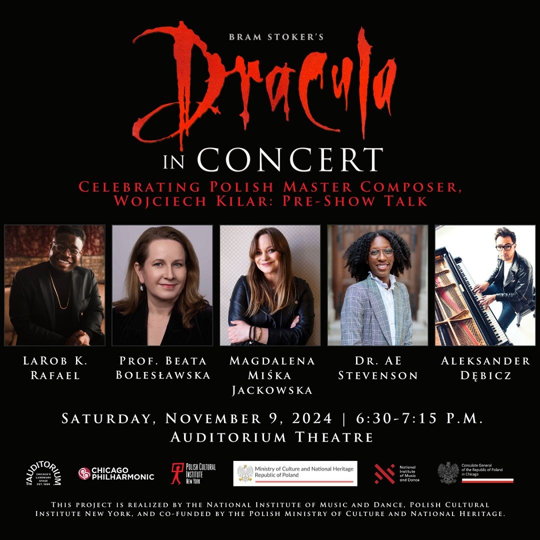 9 listopada 2024 o godz. 19.30 w Auditorium Theatre w Chicago będzie miała miejsce amerykańska premiera projektu "Dracula Live in Concert with Chicago Philharmonic". Pokaz poprzedzi dyskusja z udziałem LaRoba K. Rafaela, prof. Beaty Bolesławskiej-Lewandowskiej, dr AE Stevenson, Magdaleny Miśki-Jackowskiej i Aleksandra Dębicza.
