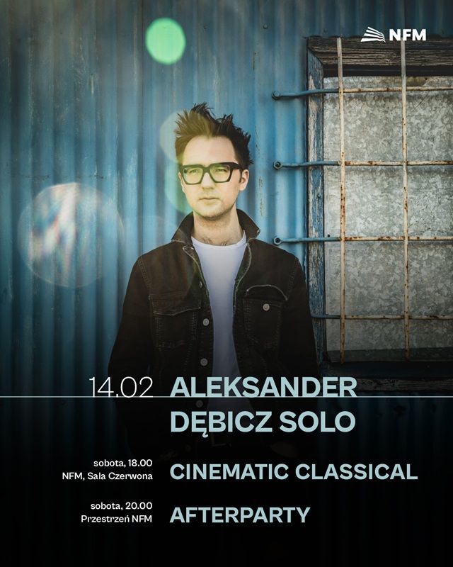 Co roku radosne wspomnienie św. Walentego jest znakomitym powodem, żeby świętować tę okazję i wybrać się na koncert. Wieczór 14 lutego 2026 spędzony w Narodowym Forum Muzyki z oryginalną muzyką Aleksandra Dębicza – występującego na całym świecie pianisty, kompozytora i improwizatora – będzie równie przyjemny, jeśli przeżyjemy go w towarzystwie przyjaciół, rodziny lub nawet decydując się na randkę ze sobą. Wszystkich tych, którzy po jego koncercie w NFM o godz. 18:00 nie chcą kończyć spotkania ze sztuką, organizatorzy zapraszają na afterparty o godz. 20:00 przy stolikach w Sali Czarnej.