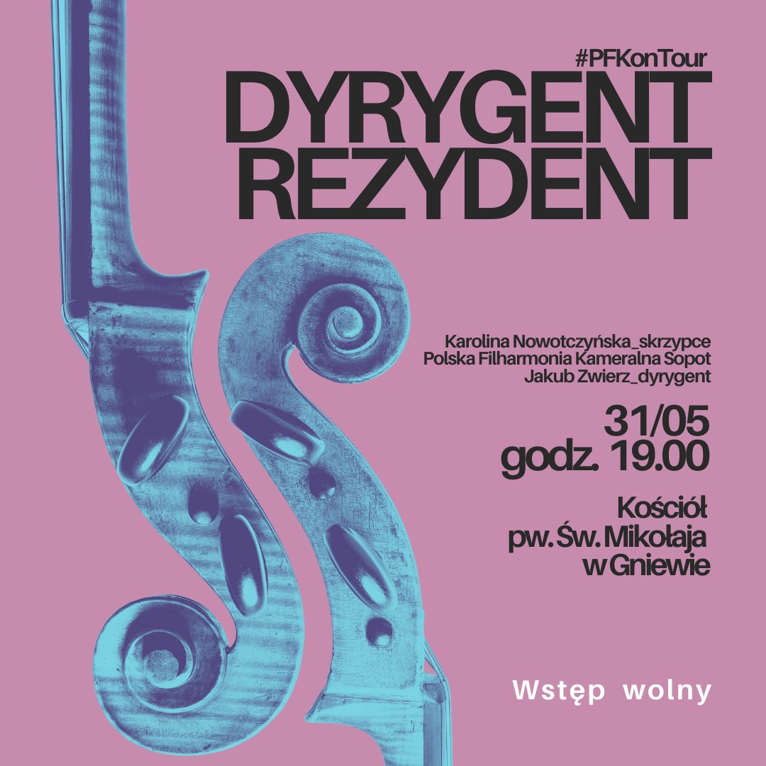 Zwierz w Gniewie: w ramach programu "Dyrygent-rezydent" orkiestrę Polska Filharmonia Kameralna Sopot poprowadzi Jakub Zwierz w Kościele pw. Św. Mikołaja w Gniewie 31 maja 2024 o godz. 19.00. Wstęp wolny!