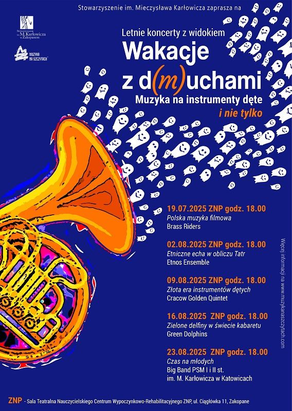 Stowarzyszenie im. Mieczysława Karłowicza w Zakopanem zaprasza na II "Letnie koncerty z widokiem "Wakacje z d(m)uchami", które odbędą się w dniach 19 lipca - 23 sierpnia 2025 roku.