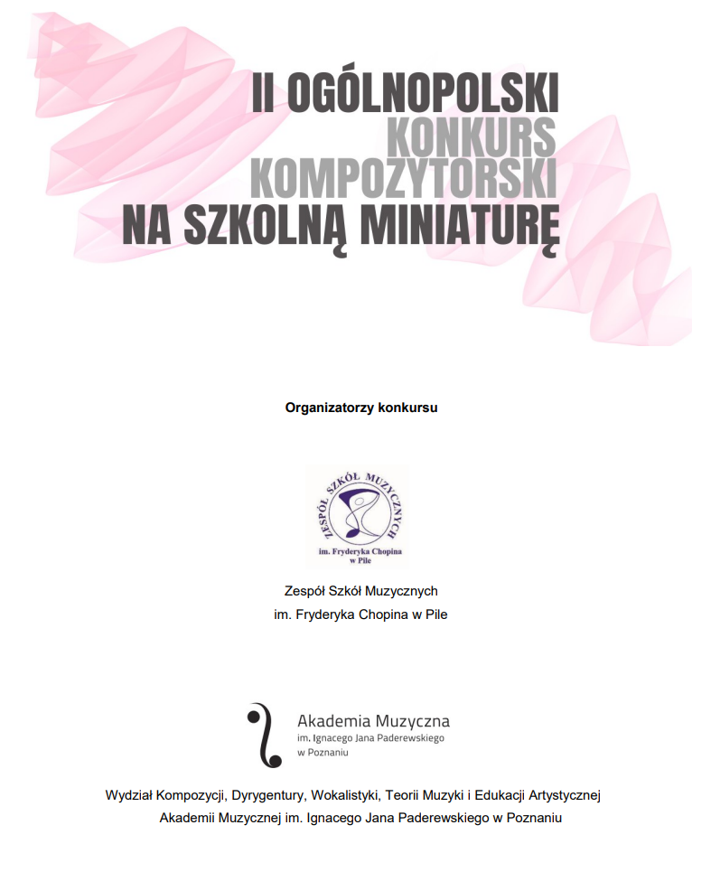 Zespół Szkół Muzycznych im. F. Chopina w Pile i Akademia Muzyczna im. Ignacego Jana Paderewskiego w Poznaniu ogłaszają II Ogólnopolski Konkurs Kompozytorski na szkolną miniaturę. W konkursie może wziąć udział każdy uczeń szkoły muzycznej II stopnia z Polski. Wyklucza się uczestnictwo uczniów posiadających status studentów wyższych uczelni muzycznych. Termin nadsyłania zgłoszeń upływa 30 kwietnia 2024 roku.