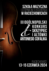 Szkoła Muzyczna I stopnia im. Oskara Kolberga w Raciechowicach ogłasza III Ogólnopolski Konkurs Skrzypiec i Altówki Antoniego Cofalika, który odbędzie się w dniach 13-15 czerwca 2024 roku. Termin nadsyłania zgłoszeń upływa 13 maja.