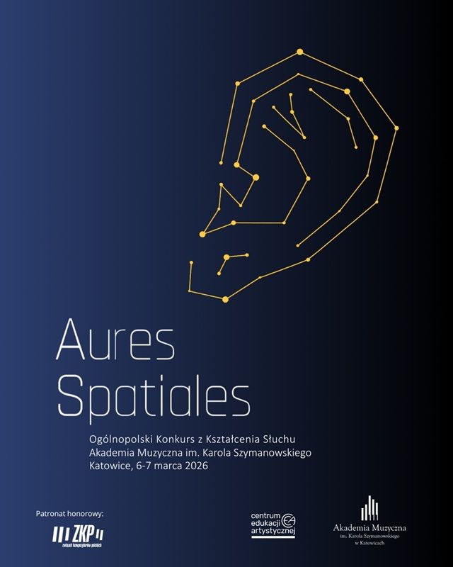 "Uszy przestrzenne” - takie właśnie hasło przewodnie ma I Ogólnopolski Konkurs z Kształcenia Słuchu "Aures Spatiales", organizowany przez Akademię Muzyczną im. Karola Szymanowskiego i Centrum Edukacji Artystycznej. Odbędzie się w katowickiej Akademii, w dniach 6-7 marca 2026 roku. Uczniowie uczestniczą w konkursie bezpłatnie. Termin nadsyłania zgłoszeń upływa 6 lutego 2026.