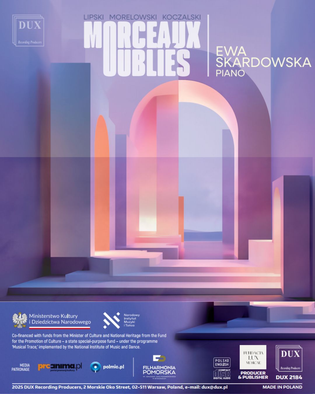 Album Morceaux oubliés (DUX 2184) to mało znane utwory fortepianowe Stanisława Lipskiego, Ludwika Morelowskiego i Raula Koczalskiego w interpretacji Ewy Skardowskiej. Od 30 listopada 2025 roku płyta dostępna będzie w salonach Empik, dobrych sklepach muzycznych i na https://www.dux.pl/