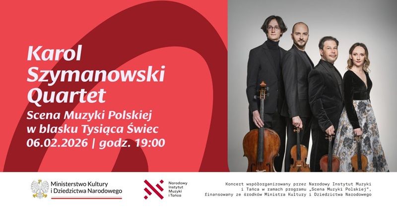 Koncert w ramach programu Narodowego Instytutu Muzyki i Tańca "Scena Muzyki Polskiej” 6 lutego 2026 o godz. 19:00 stanie się prawdziwą muzyczną podróżą w czasie – niczym dźwiękowy pomost rzucony między doskonałą równowagą renesansowej harmonii a drapieżną, pełną napięć energią nowoczesności. W Filharmonii Opolskiej wystąpi Karol Szymanowski Quartet – jeden z czołowych polskich zespołów kameralnych naszych czasów, ceniony na międzynarodowych estradach za perfekcję wykonawczą.