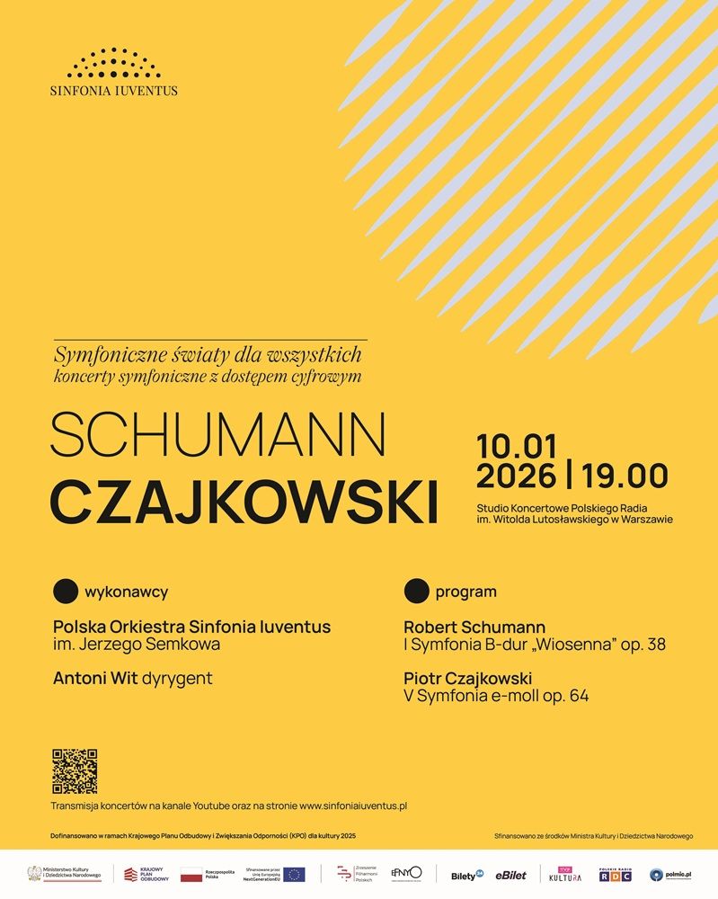 "Symfoniczne światy dla wszystkich" to projekt Polskiej Orkiestry Sinfonii Iuventus, który otwiera przestrzeń muzyki klasycznej dla każdego – niezależnie od miejsca, czasu czy możliwości uczestnictwa na żywo. Dzięki transmisji online koncert Orkiestry w Studiu Koncertowym Polskiego Radia im. Witolda Lutosławskiego w Warszawie 10 stycznia 2026 o godz. 19:00 pod batutą legendarnego Antoniego Wita stanie się dostępny szerokiemu gronu odbiorców, pozwalając doświadczyć piękna muzyki na najwyższym poziomie.