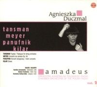 Druga płyta nowej serii płyt Orkiestry Kameralnej Polskiego Radia „Amadeus” i dyrygentki Agnieszki Duczmal – po nagraniu Wariacji Goldbergowskich Johanna Sebastiana Bacha w transkrypcji na orkiestrę autorstwa Józefa Kofflera (PRCD084) – w całości poświęcona została polskiej muzyce współczesnej. Cztery nagrane kompozycje reprezentują cztery różne oblicza naszej rodzimej twórczości XX wieku. Najwcześniejszy, otwierający płytę Tryptyk Aleksandra Tansmana z 1930 roku to modelowy przykład utworu neoklasycznego o przejrzystej fakturze, motorycznym charakterze i nawiązaniach do polskiej muzyki ludowej. Zamówiony w 1971 roku przez Yehudi Menuhina Koncert skrzypcowy Andrzeja Panufnika reprezentuje nowy rodzaj brzmieniowości, osiągniętej poprzez operowanie bardzo wyselekcjonowanym materiałem dźwiękowym, ograniczonym zaledwie do trzydźwiękowej komórki. Z kolei Koncert kameralny na harfę, wiolonczelę i orkiestrę smyczkową Krzysztofa Meyera z 1984 roku porusza przede wszystkim wielością odcieni ekspresyjnych – od fragmentów wyciszonych, lirycznych (początek I części), poprzez bardziej dynamiczne i motoryczne (II część), aż do refleksyjnych (część III). Zamykająca płytę słynna Orawa Wojciecha Kilara z 1986 roku to jeden z wielu utworów kompozytora związanych z Tatrami – żywiołowa muzyka inspirowana muzyką góralskiej kapeli.